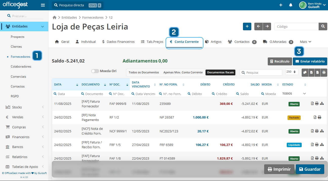 Aprenda a consultar e exportar relatórios de conta corrente de fornecedores no Officegest para acompanhar compras, dívidas e históricos de documentos de forma rápida e personalizada.