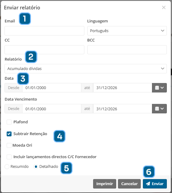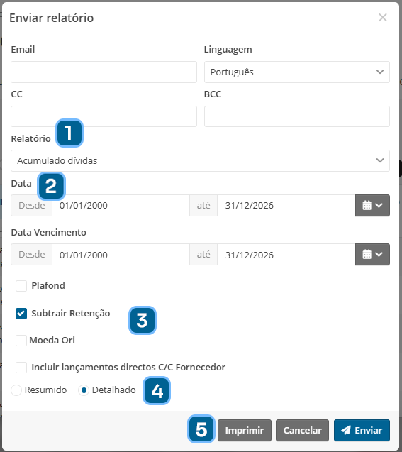 - Escolha um entre um relatório Detalhado ou Resumido